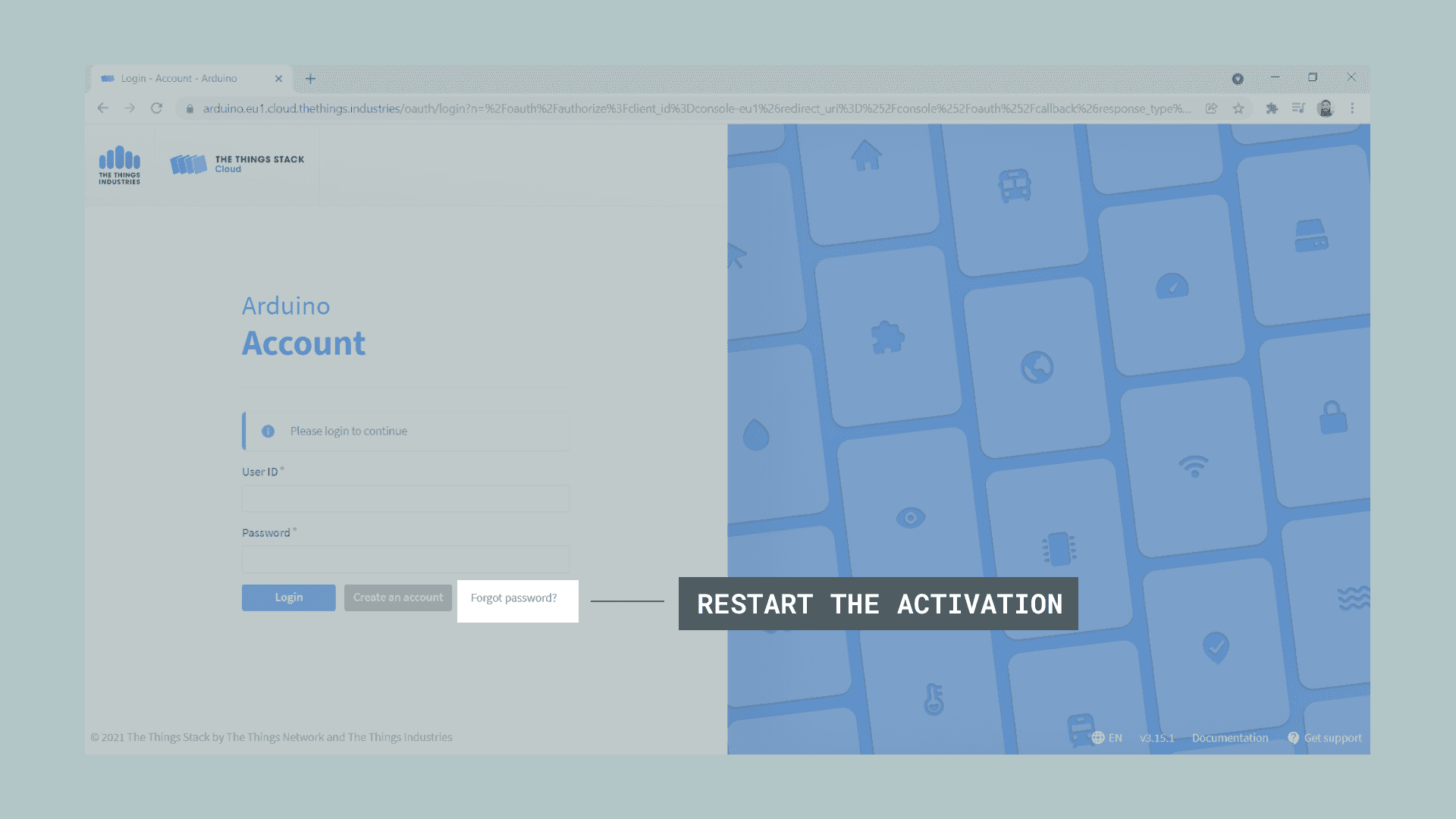 After some time, the automatic email sent out by TTI will expire. If the link is expired and you wish to access the Things Stack Network, you can click on the "Forgot Password" link which will restart the activation.